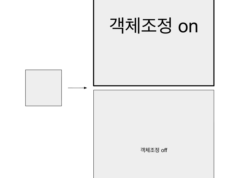객체 조정을 off 한 채로 도형의 크기를 바꾸면, 원래 지정되었던 테두리 선 굵기와 글꼴 크기가 유지된다.
